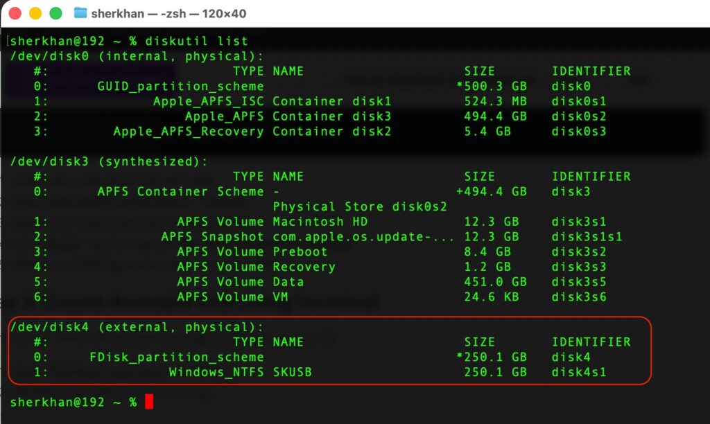 - Identify your USB drive by running: